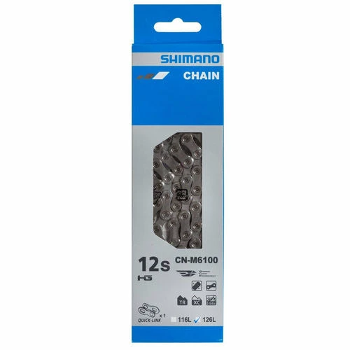 The M6100 chain provides smooth shifting and enhanced chain retention thanks to an extended portion of the inner plate. The new chain features QUICK-LINK assembly and is optimized for HYPERGLIDE+ cassettes and DYNAMIC CHAIN ENGAGEMENT+ chainrings.