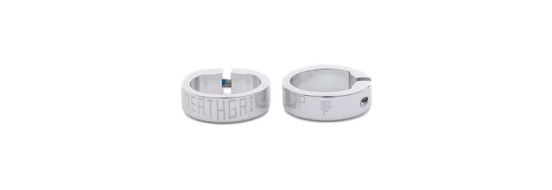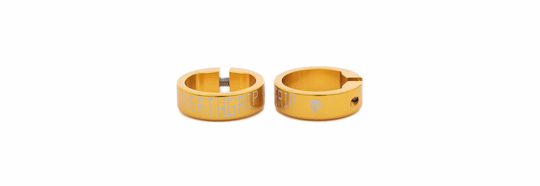 Replacement collars for DMR Deathgrips. Each packet contains two anodised Aluminium Collars to customise your Deathgrips – the ultimate all mountain bike handlebar grip.