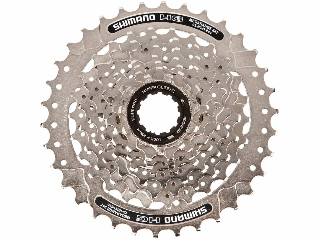 The Shimano CS-HG41-8 is an 8-speed Acera-level cassette that comes in three different ratios. Optimised Hyperglide sprockets ensure perfect shifting for touring and MTB rides. Compared to its predecessors, the CS-HG41-8 is also characterised by a pleasantly low weight.