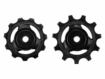 Shimano tension and guide pulley set for Dura Ace. Set consists of guide pulley and tension pulley. Sealed precision bearings on both wheels ensure low friction and smooth running. With 11 teeth each.