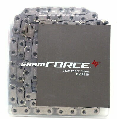 Specifically designed to work with its new AXS 12-speed group, SRAM’s Force 12-Speed Chain is a unique take on chain construction. It uses its all-new Flattop technology creating a lighter, quieter, and stronger chain. This also enables SRAM to build a narrower chain to accommodate those 12 cogs without sacrificing strength or durability. In fact, its SRAM’s longest-running chain to date. SRAM fortifies the inner link plates and rollers with its Hard Chrome plated surface treatment that helps resist corrosion and reduces wear which in turn increases its service life. The end result is a very quiet and ultra-efficient bicycle chain allowing for more space between its outer plates and the narrow spacing between the 12-speed cogs on either side.