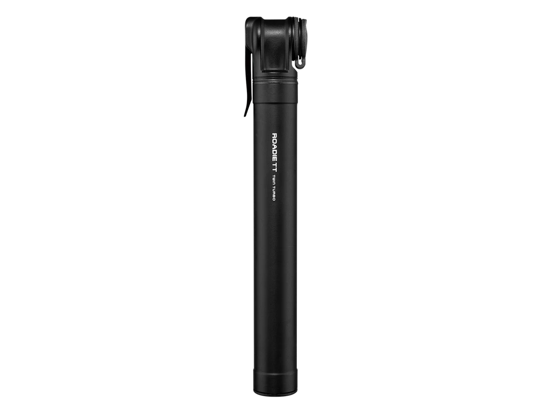 The Roadie TT Twin Turbo is a full metal, pocket sized mini pump that transfers larger air volume from a bigger diameter outer chamber into a smaller diameter inner chamber to deliver more air at higher pressures to fill tires 50% faster and easier. Integrated dust cap keeps pump head clean and thumb lock lever ensures an air-tight seal.